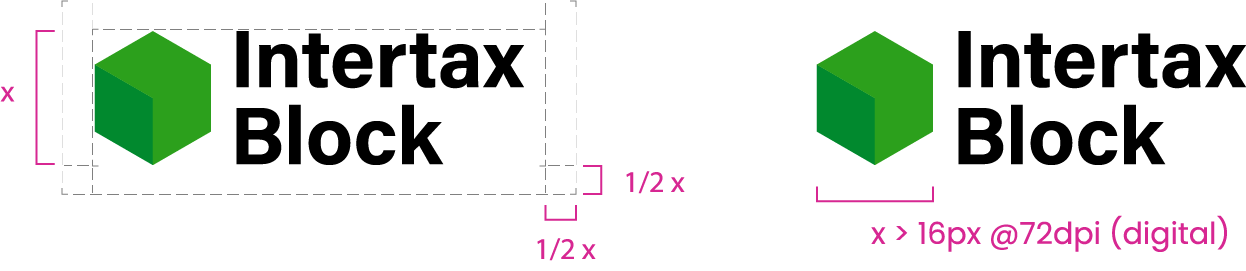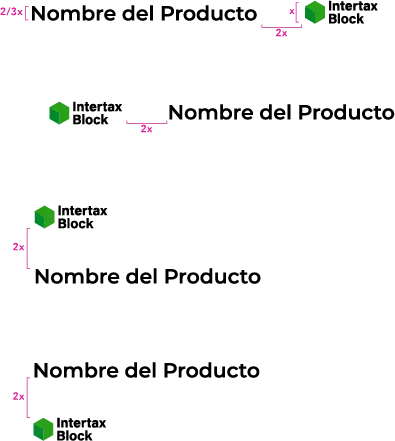 En activos con restricciones de espacio (plataformas de redes sociales, productos, íconos de aplicaciones, etc.), el símbolo de Intertax Block se puede separar de la marca denominativa.